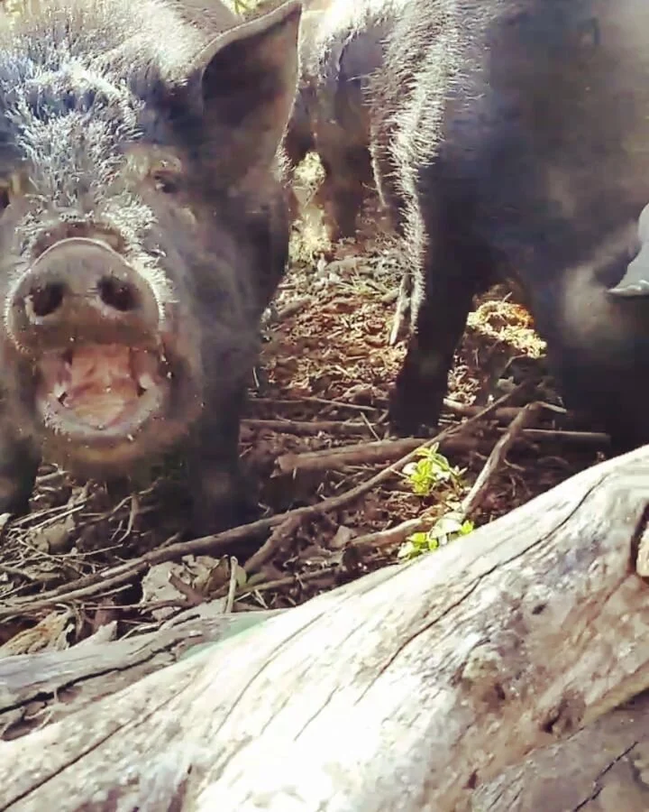 We let our pigs forage and develop naturally on a Southern Oregon hillside surrounded by oak trees, giving them plenty of instinctual foraging, great for muscle tone development, super happy pigs, unparalleled flavor, and a nutrient-rich, clean source of vitamins and minerals. When compared to meat found in grocery stores - the quality resulting from our chosen farming practice is like comparing night and day.